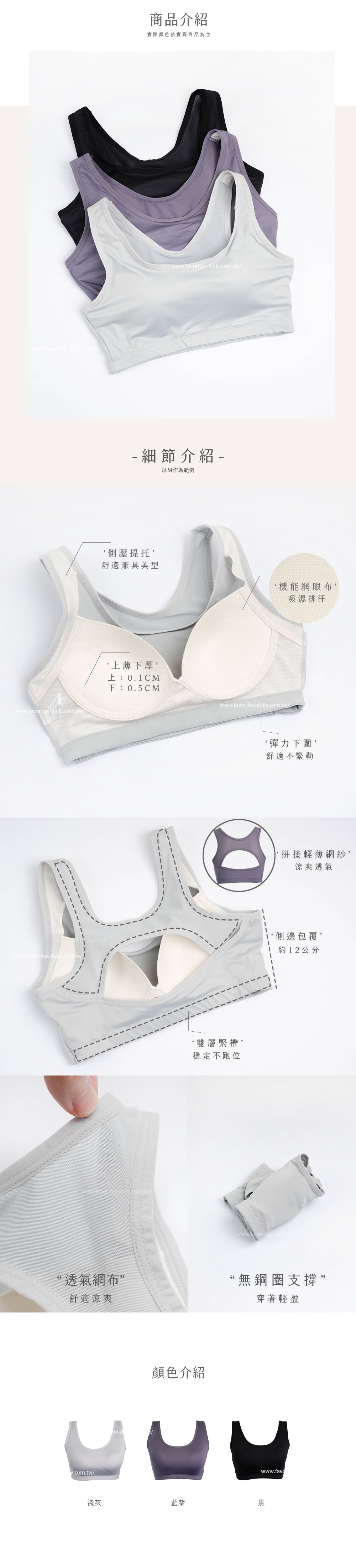商品內容 MIT 悠然淡影 輕盈涼感 無鋼圈運動內衣一件