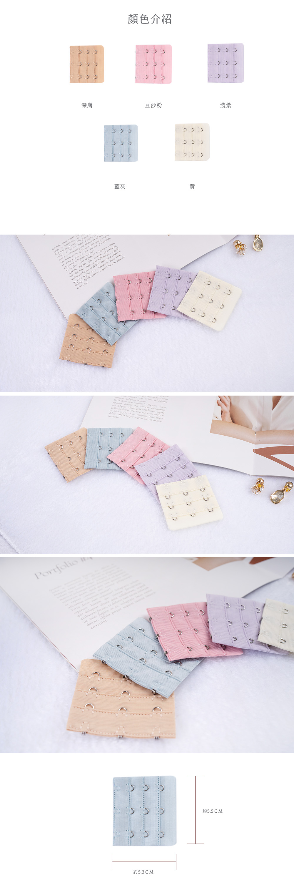 MIT三排三扣 加長背勾 (深膚、藍灰、粉、淺紫、黃)